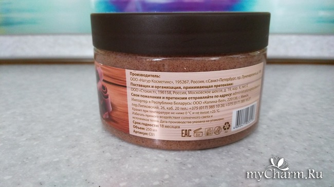 Скраб очень бережно и нежно очищает вашу кожу, при этом не царапает и не травмирует. К тому же, за счет содержания различных масел, кожа после применения данного скраба становится не только бархатистой и приятной на ощупь, но и буквально напитанной маслами и увлажненной.