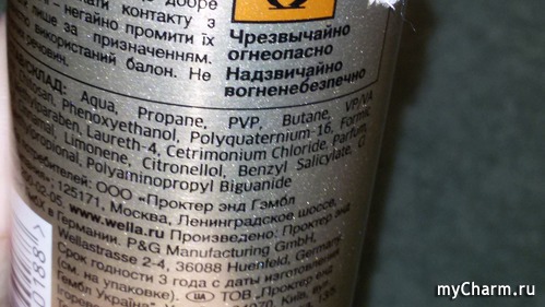 Главный посыл и заявление средства: «Упругая фиксация надолго». В самом низу указана пятая, самая последняя, суперсильная степень фиксации. Для моих волос с непростым характером – то, что надо! Упругость достигается при помощи уникальной технологии Wella Flexactive. Еще одно приятное обещание от производителя: «Естественный блеск до 24 часов».