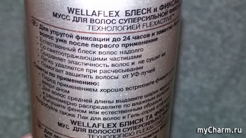 Я их перепробовала несколько, но в этот раз остановила свой выбор на Wellaflex Блеск и фиксация. Конечно, парикмахер мне советовала приобрести что-нибудь более профессиональное - типа Матрикс или Редкин. Я по ее совету зашла в спецмагазин для стилистов и вместо мусса купила какое-то супер-средство для восстановления волос за 400 рублей (о нем поведаю в следующий раз). А на мусс у меня просто не хватило наличных – карты там не принимали.