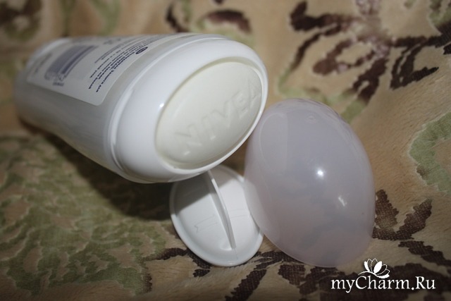 Каждый раз, когда открываешь крышку и снимаешь защитный колпачок, то на белом бархатном стике остается отпечаток с колпачка в виде надписи NIVEA. Мне такие мелочи кажутся важным украшением. Но если защитный колпачок выбросить, то надпись сотрется и все. Выдвигается стик при помощи расположенного в нижней части колесика. На мой взгляд, удобно и оригинально. Аромат у средства кремово-цветочный. Легкий и ненавязчивый. Это правильно, потому как резкие запахи могут «мешать» парфюму. А если средство с резким запахом еще и плохо регулирует потоотделение, то получается такое амбре?!