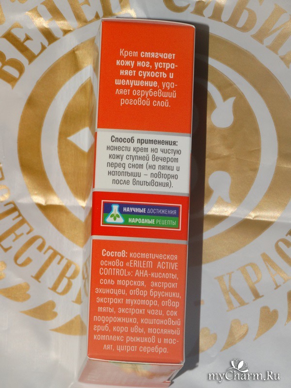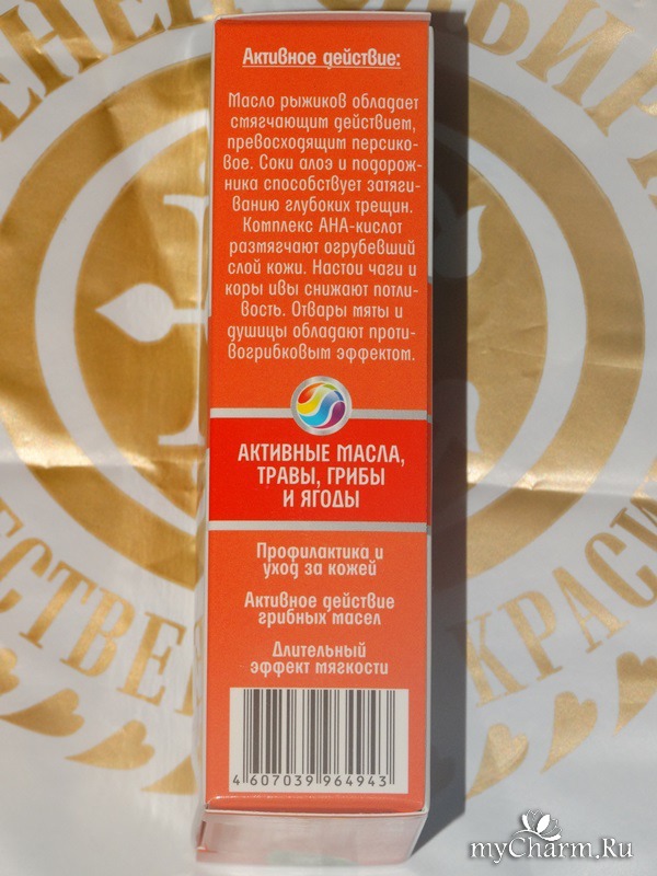 Красный крест на лицевой стороне упаковки даёт чёткое ощущение лекарственного продукта. И в какой-то мере так оно и есть. Ведь данное средство призвано «исцелить» кожу пяточек (и не только – ещё и ступней) от сухости и неприятных последствий, вызванных ею. И всё же сам производитель уточняет, что сей продукт лекарственным средством не является.