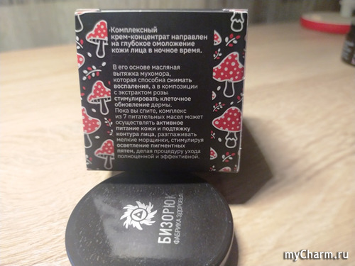Фабрика Бизорюк это известный российский бренд натуральных средств, поэтому состав данного крема - это не только вытяжка мухомора, но и целый список трав: