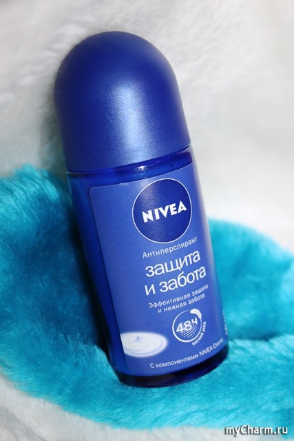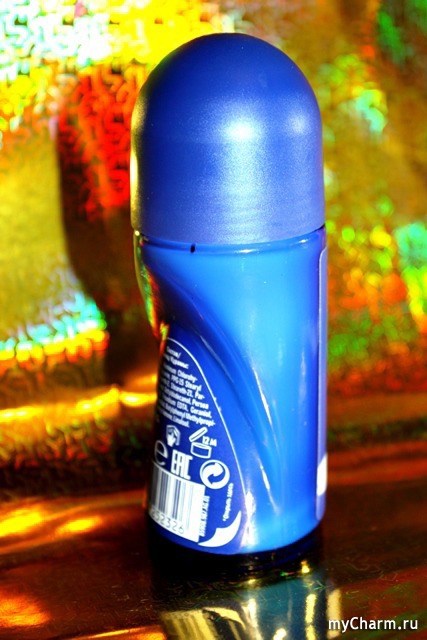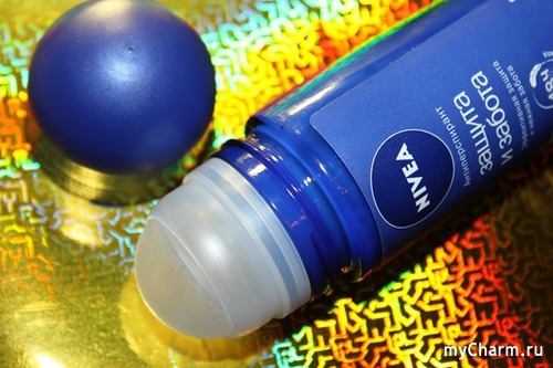 Вот и в этом случае все достаточно просто и со вкусом. Стеклянный флакон с отвинчивающимся полукруглым колпачком в глубоких синих тонах оживлен белоснежным изображением крема, перышка и подробного описания. Благодаря такому сочетанию одним взглядом можно оценить средство и понять всю информацию о нем. Но есть и еще один немаловажным момент: этот антиперспирант с компонентами знаменитого крема Nivea (тот, что в синей баночке). Так что, синий облик тут совершенно не напрасен. Это своего рода намек на мягкость ухода и заботу о вашей коже.