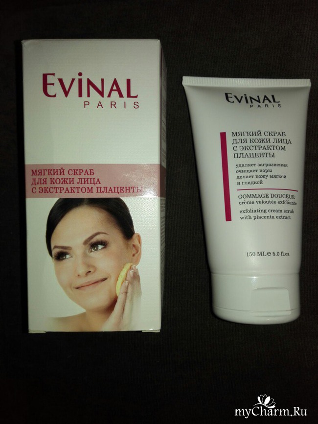 Как вы уже догадались, речь сегодня пойдет о скрабе для лица. В этот раз мне посчастливилось попробовать Мягкий скраб для кожи лица с экстрактом плаценты от Эвиналь.
