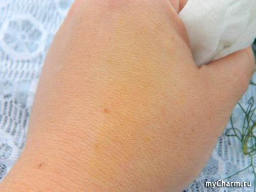Специально для обзора я провела небольшой эксперимент: испачкала руку цветочной пыльцой.