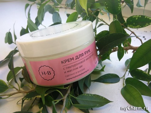 Мой открытие бренда Honey Bunny началось с баночки Крема для рук с гиалуроновой кислотой и маслом ши. Она такая ладненькая и симпатичная, что сразу стала заметным украшением туалетного столика. Крышка отвинчивается, а через широкую горловинку очень удобно брать средство. Я всегда пользуюсь дополнительной ложечкой-шпателем, чтобы максимально сохранить «первоначальный» вид и состав крема, а вот пальцами (даже вымытых рук) обязательно заносится ненужная бактериальная среда.