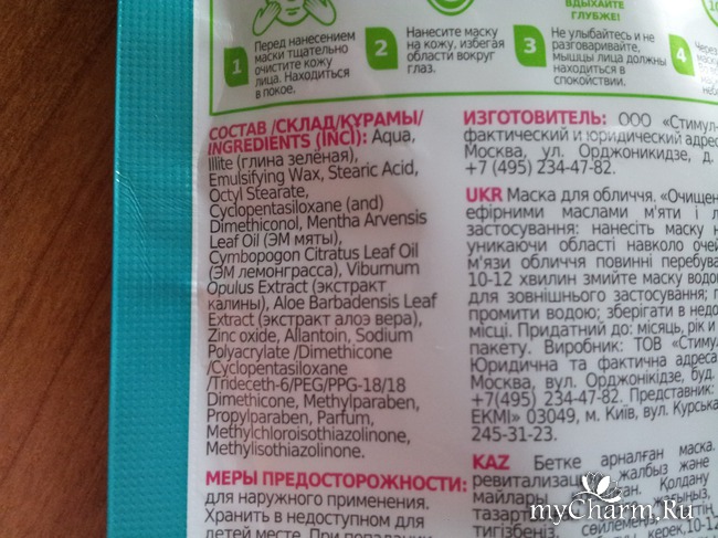 • Полезно! И не только для лица. Если следовать рекомендациям производителя (находиться в спокойствии), то у каждой женщины, воспользовавшейся этой маской, найдется 10 минут на то, чтобы подумать о жизни, о прекрасном, немного помечтать. К тому же мята, в принципе, расслабляет нервную систему, так что, милые женщины, пока маска на лице — никаких лишних телодвижений, а потом хоть в бой)))