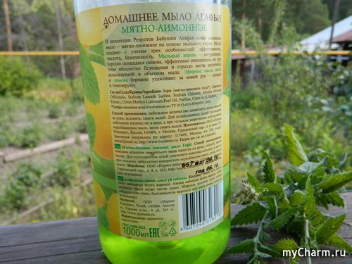 Сегодня я опять буду рассказывать о косметическом продукте от бренда Рецепты бабушки Агафьи. В этот раз обзор посвящён Мятно-лимонному жидкому мылу для рук и посуды.