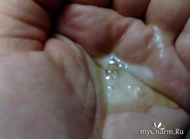 Намыливается гель достаточно быстро, образуя белую пенку. Смывается также без особых усилий.