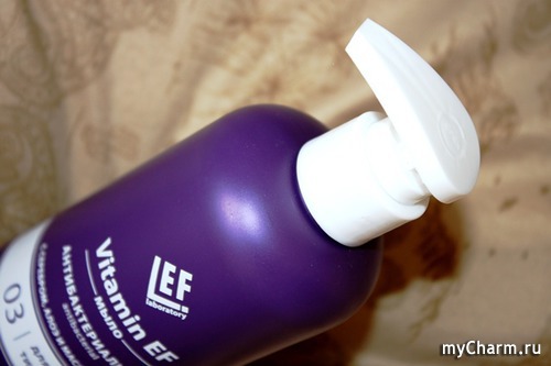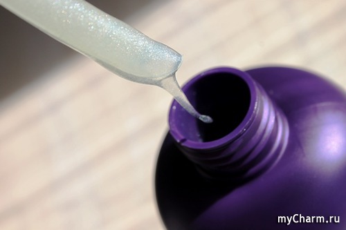 Насыщенный фиолетовый флакон выполнен из плотного пластика. Он словно прорезиненный и почти не скользит в руках, а при солнечном свете отливает искрящимся неоном. Красиво и изящно. Завершением оформления служит удобный массивный дозатор. Работает «на отлично», без заеданий и скрипов. Нажимаем до полного погружения, и доза уходового продукта плавно подается на ладонь. А знаете, почему плавно? Средство очень густое и по консистенции даже ближе к желейному. Оно такое томное и тягучее. Кстати, это хороший признак для экономичного применения. Ведь как-никак, а пользоваться будет вся семья.
