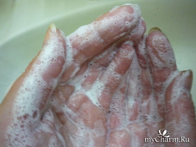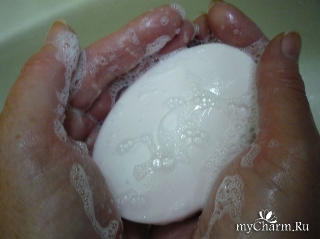 Пользуюсь я этим мылом 1-2 раза в день. Мылится оно хорошо и в горячей, и в холодной воде. Даёт достаточное количество пены для смывания макияжа.