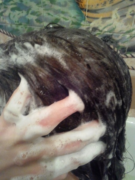 Мылим волосы, вспениваем на голове и получаем вот такую отличную пенку! Ну почти такая же, какую можно получить от применения жидких шампуней!