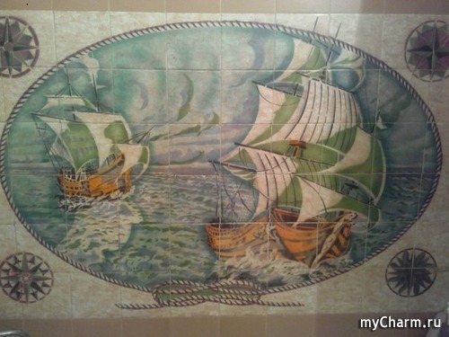 а вот корабли на кафеле заинтересовали. у меня рисунок рыбки в аквариуме