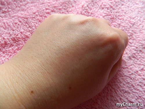 Через несколько минут после нанесения начинает сохнуть тыльная сторона кисти, кожу потягивает так, точно никакого крема и в помине не было. А вот ладонь, напротив, начинает мокнуть – как будто потеет. Через пару минут это чувство проходит, а вот сухость тыльной стороны, увы, нет…