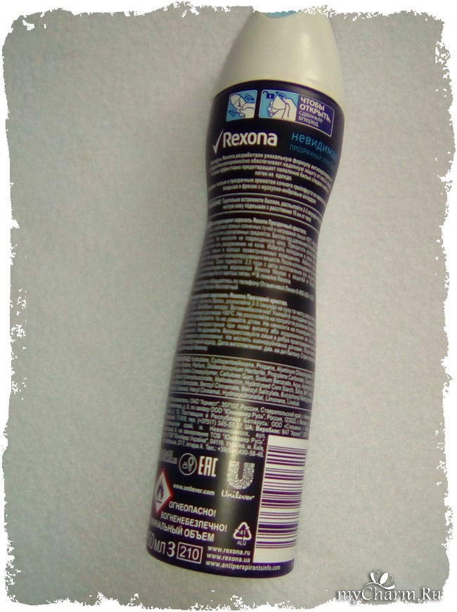 Также на обратной стороне средства производитель указывает меры предосторожности. Антиперсперант Rexona необходимо распылять на расстоянии 15 см от тела.