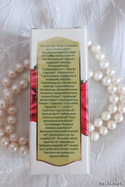 Если посмотреть состав, то можно увидеть, что большинство компонентов натурального происхождения: гель алоэ, масло орехов макадамии, масло зеленого кофе, гидролат цветков василька, гидролизованный соевый и пшеничный белок. Среди прочих были и ранее мне неизвестные, но очень интересные растительные продукты. Например, Pseudoalteromonas ferment extract, или же его еще называют Антарктицин. Этот гликопротеин продуцируется из бактериального штамма, он устраняет сухость кожи, обладает регенерирующим эффектом, активирует синтез коллагена, поэтому очень часто используется в антивозрастной косметике.