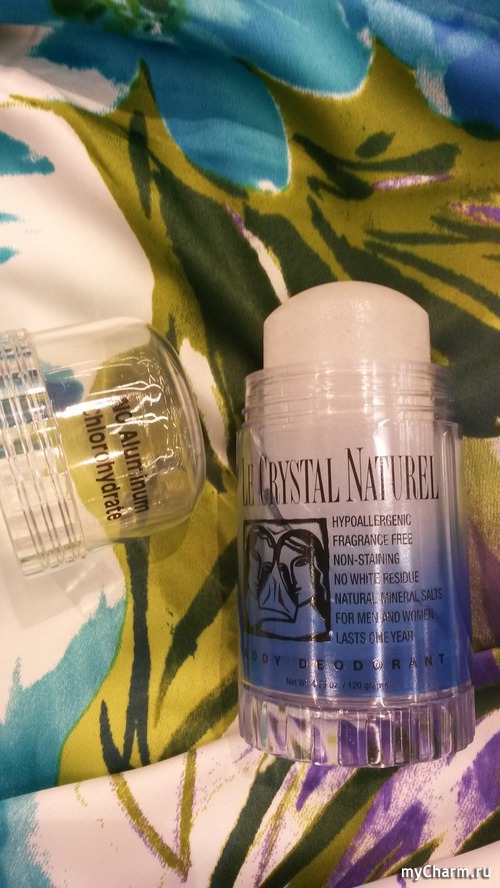 Отличительная особенность этих дезодорантов в том, что они подходят как женщинам, так и мужчинам. Кристалл не имеет ни запаха, ни цвета, также на коже не оставляет никакого следа. Правда, на прилавках магазинов появилась разновидность упаковки, есть розовые, я так понимаю, что это для нас, женщин и голубые для сильной половины. Состав одинаковый-аммониевые квасцы.