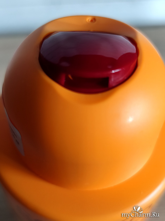 Флакон имеет удобную винтовую крышку, верх которой имеет защелку с небольшим отверстием, через которую выливается порция геля, и оно позволяет контролировать расход.