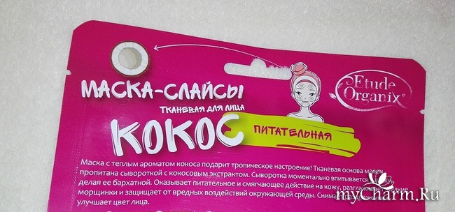 Etude Organix имеет большой ассортимент масок - слайсов, все они ярко и красочно оформлены, каждая выполняет свои функции. Я начала свое знакомство с Питательной маски. Сейчас в зимнее холодное время года такая маска – слайс актуальна.