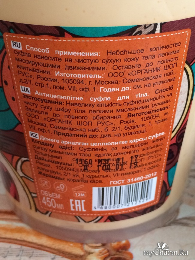 Акция "Стройнеем вместе" прошла, а вот правильные привычки в питании и уходе за кожей остались. Я продолжаю укреплять кожу тела и заниматься спортом. Когда не ленюсь, то два раза в день вместе с массажером применяю необыкновенное средство. Это Антицеллюлитное суфле для тела от Organic Shop. С этим производителем у меня довольно тесная дружба, причем очень давно. Многие средства пришлись по душе. А это суфле я получила в подарок и активно им пользуюсь. Посмотрите и вы мой обзор на него.