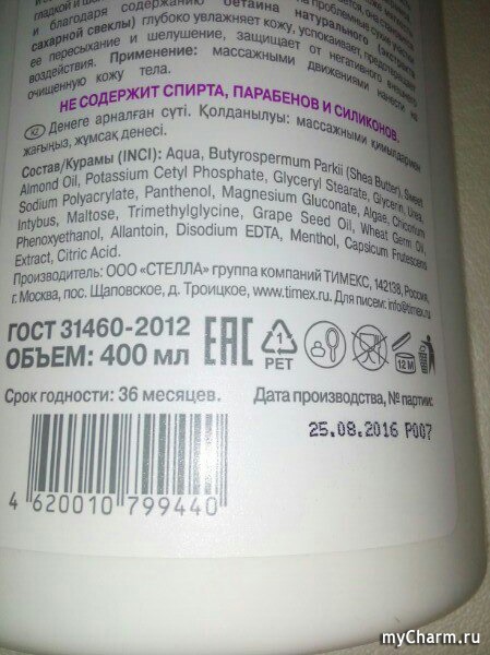 Помимо хорошей увлажненности, лосьон прекрасно смягчает кожу, делает ее гладкой и приятной на ощупь. Для этого в состав добавлены полисахариды. Они увеличивают количество влаги в коже, создают, защитную пленку и не дают влаги испариться.