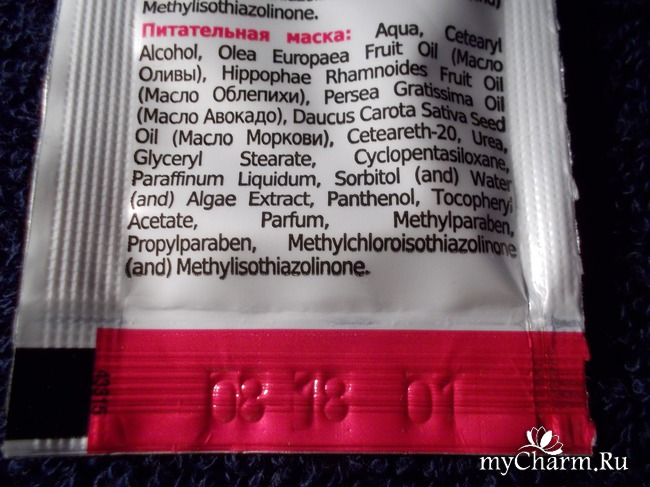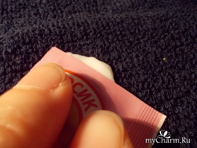 После того как я подготовила руки для маски, второго этапа счастья, я её выдавила из саше и нанесла себе на ручки. Всё быстро впиталось, и остатков у меня не было.