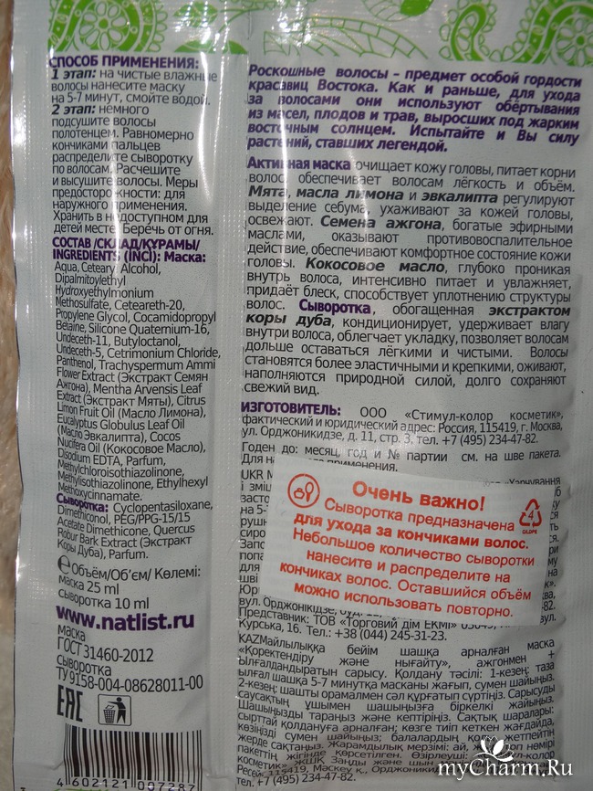 На обратной стороне все стандартно: описание чудодейственных свойств компонентов средства, состав, способ применения и другая полезная информация.