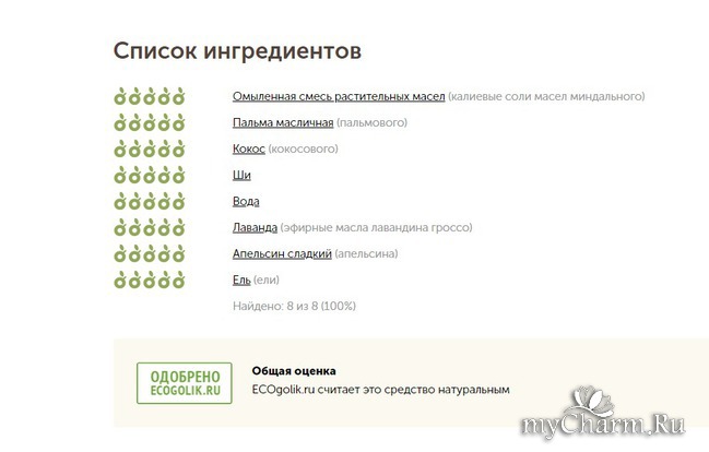 Производитель утверждает, что средство является полностью натуральным. К сожалению, я не сильна в этом вопросе, но на помощь приходит независимая экспертиза...