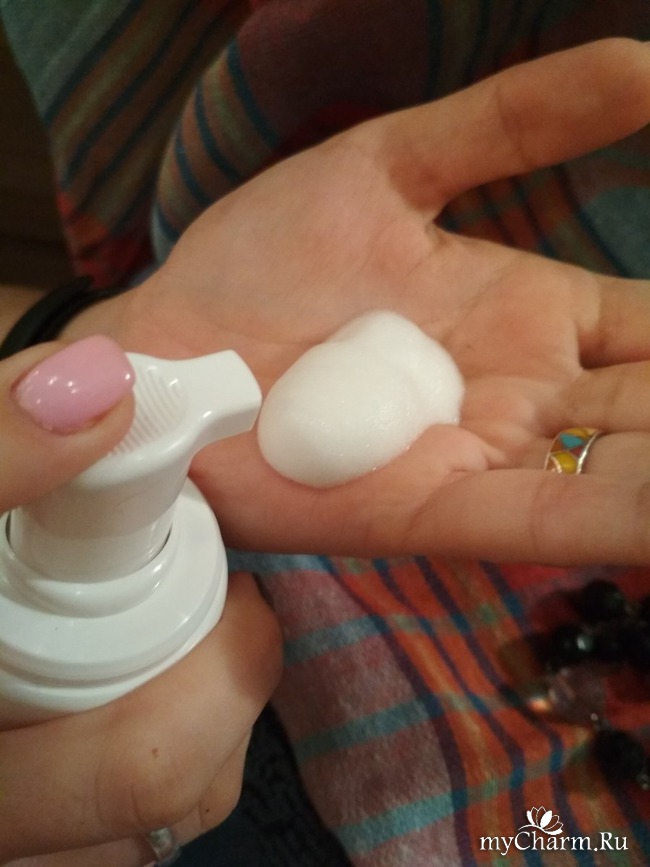 Один из плюсов продукта - удобная и экономичная дозировка. Одно нажатие превращает упомянутую в начале обзора желтоватую жидкость в забавную белую пенку.
