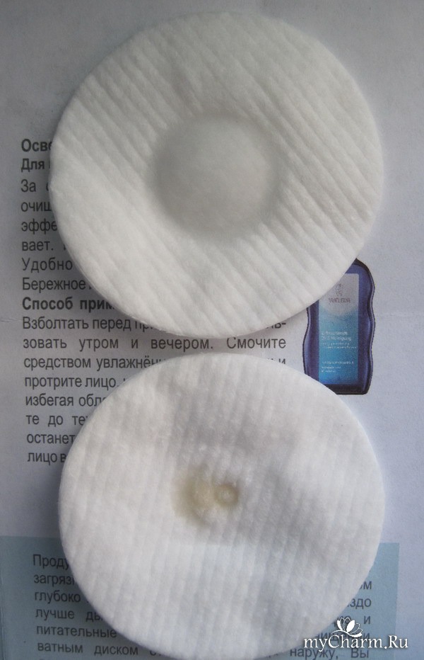 Поэтому я начну с упаковки и сравню тоник Weleda с другим тоником, чтобы было нагляднее. Смотрим сначала на горлышко, потом смотрим на ватку. Разница в расходе средства очевидна.