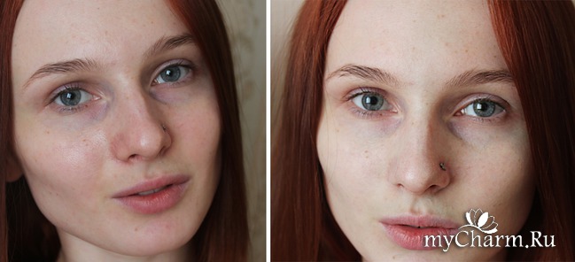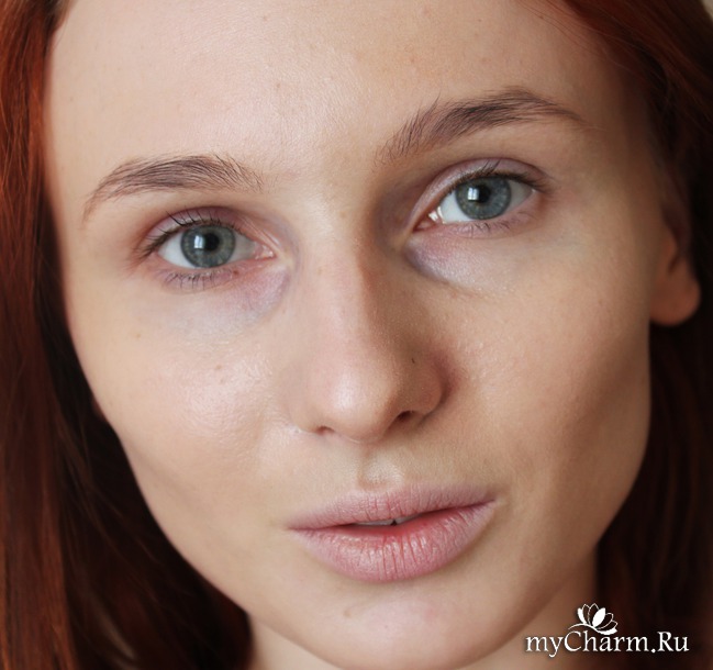 В завершение моего обзора, конечно же, фото. Тут уже поверх лежит и тональный (ВВ крем от Люмене), который я только сейчас, спустя 9 часов, пойду и смою и который так никуда и не исчез!