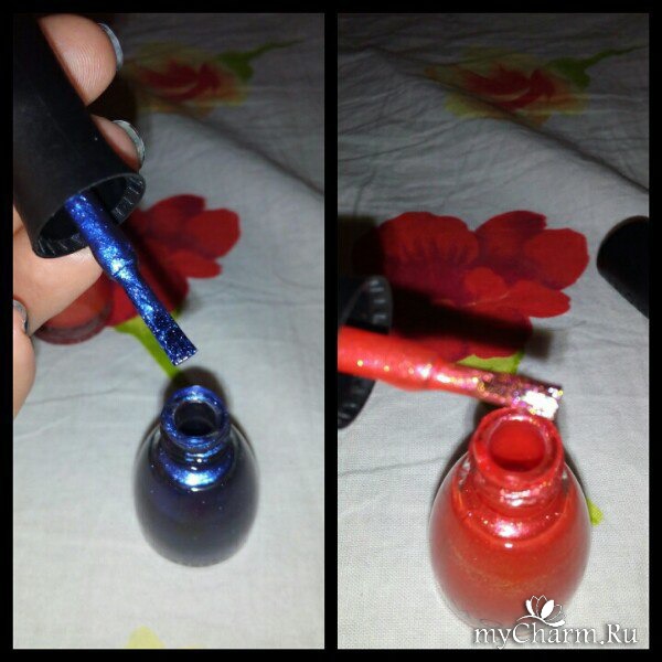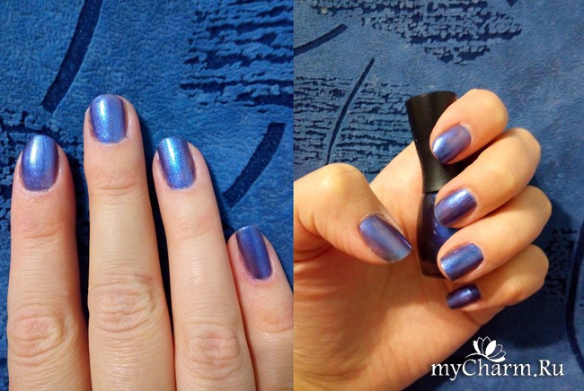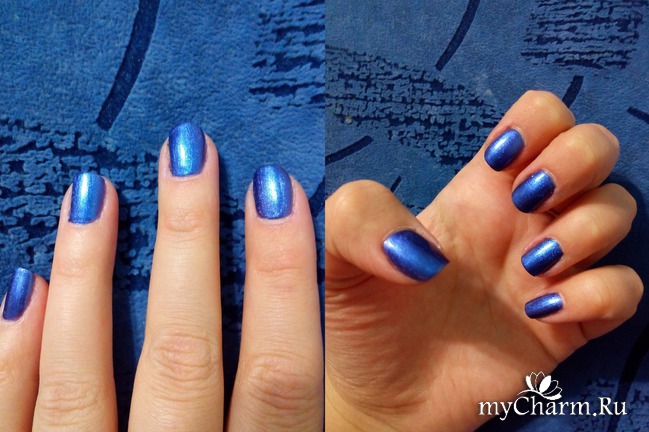 При нанесении лака в один слой, цвет сразу приобретает яркий, блестящий, переливающийся оттенок. Если нанести тонким слоем, то видны проплешины, которые можно исправить, накрасив более толстым слоем или, подождав когда высохнет лак, накрасить ногти вторым слоем. В этом случает оттенок приобретёт более насыщенный цвет. Двух слоев лака достаточно, чтобы ваш маникюр был просто шикарным (это, конечно, не о моем маникюре, а в общем).