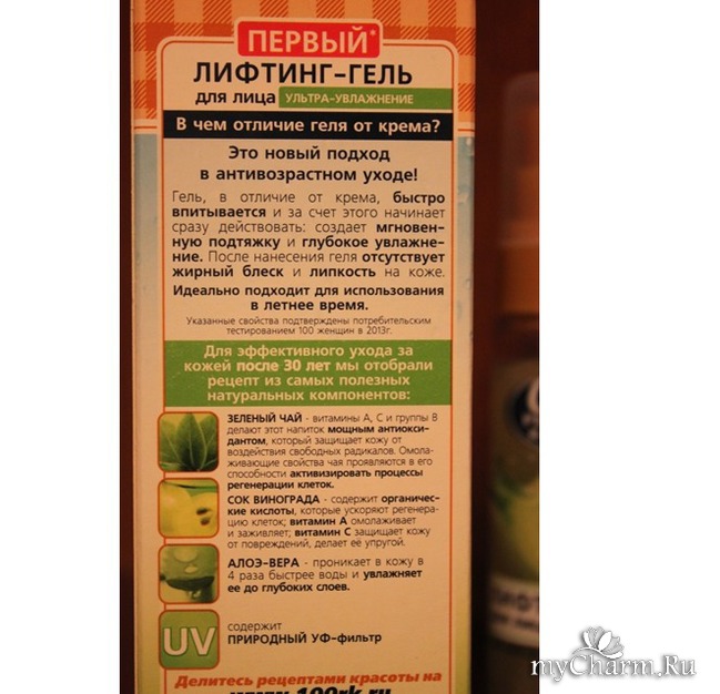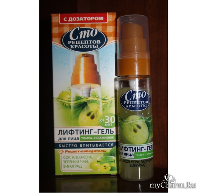 Лифтинг- гель для лица Ультра-увлажнение я приобрела в паническом поиске увлажняющего средства. Ежегодные весенние обострения сухости кожи на лице вновь застигли врасплох. Жирные питательные крема никак со мной не уживаются, все время хочется чего-нибудь легкого и гелеобразного. А серия гелей (как другие средства) марки Сто рецептов красоты представлена не только в крупных гипермаркетах, но в магазинах шаговой доступности. Так что мимо пройти сложно)))