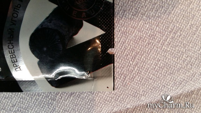 Масочка находится в миниатюрном черном пакетике, на то она и одноразовая. Изображение черной маски. Предназначена масочка для проблемной и жирной кожи. Не скажу, что у меня очень проблемная кожа, у меня она комбинированная, Т-зона жирная, постоянно блестит. На носу иногда появляются черные точки. поэтому я и решила сделать эту масочку. Так как производитель обещает, что маска-пленка способна глубоко очистить поры, улучшить состояние кожи, удалить черные точки ( то что мне нужно было) и минимизировать следы постакне ( у меня к счастью, таких дефектов не имеется). Маска с древесным углем, вулканической водой и салициловой кислотой. Пакетик гладкий, из плотной фольгированной бумаги.
