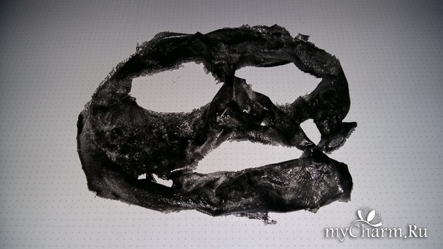 Жаль в инструкции не указано время, через которое стоит снимать маску. Держала я ее около 15-20 минут. По мере подсыхания маски лицо стягивало, в самом конце было так прикольно, что рот плохо открывался) Я прикасалась к маске пальцем и когда она полностью подсохла и перестала липнуть к рукам, аккуратненько от подбородка вверх потянула и сняла. И вот что я сняла со своего лица, на мне как-то посимпатичней смотрелось)