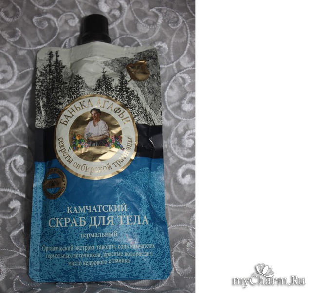 Перед Новым годом я впервые наткнулась на серию средств Банька Агафьи в мягких упаковках объемом 100 мл. И наугад выбрала для пробы Камчатский термальный скраб для лица. Очень уж меня это название заинтриговало.