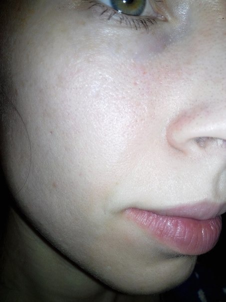 Кожа оказалась щедро увлажненной, жирной, я бы сказала, как я и ощущалось, с жирным блеском (не люблю такое, если честно - сразу тянет смыть), стянутости не присутствовало, и главного я НЕ увидела - поры НЕ были сужены, все также, как и до применения маски...