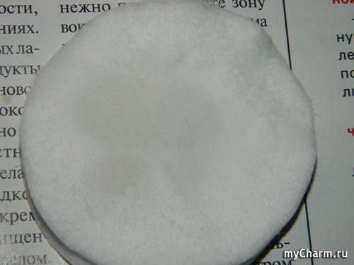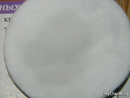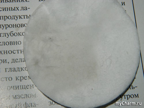 Так выглядит диск после того, как им протёрли кожу после умывания с гелем. В данном случае тоник убрал остатки моющего средства.