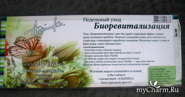 Совсем недавно, как раз в конце прошлого года мне удалось принять участие в акции нашего сайта, проведенной вместе с косметической компанией "Альпика". Суть состояла в том, что я получила на тестирование комплекс косметических средств, который называется "Биоревитализация. Недельный уход".