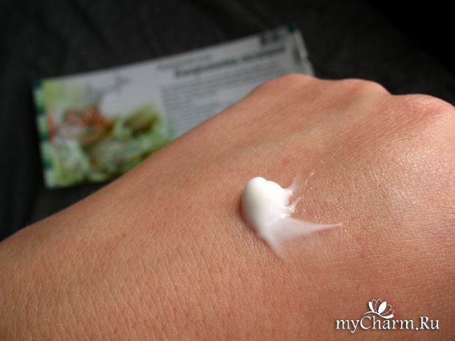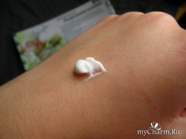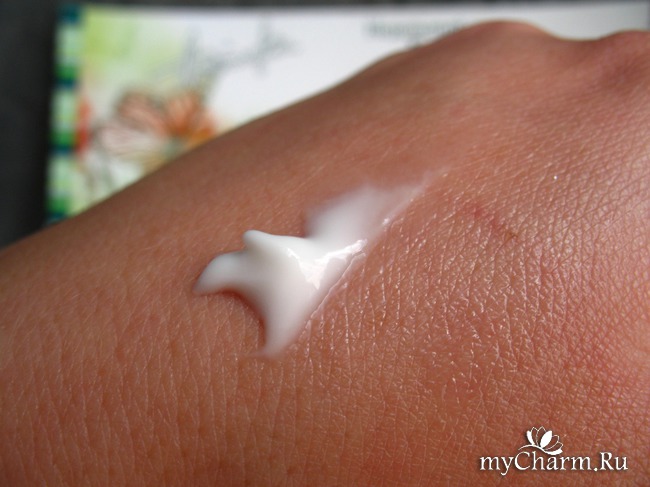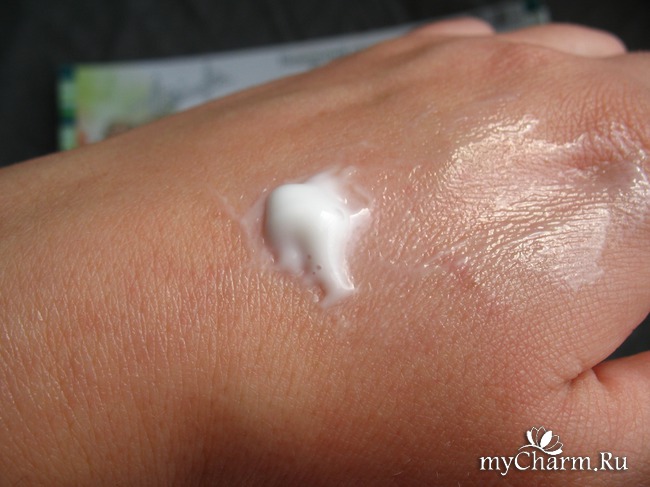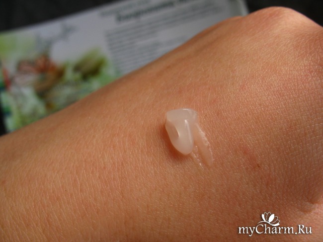 Почти прозрачная гелеобразная субстанция с приятным цветочным ароматом, напоминающим жасмин. Наносится очень легко и приятно, быстро впитывается, на коже не ощущается "лишним грузом".