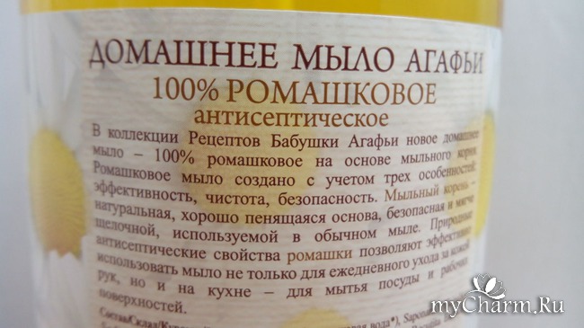 Производитель уверяет, что благодаря природным свойствам ромашки мыло имеет антисептический эффект.