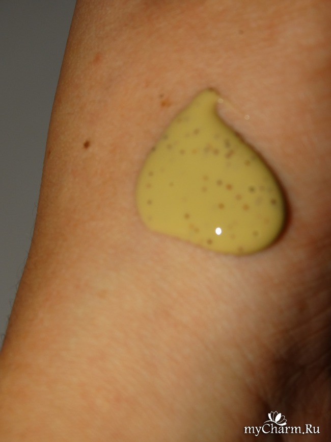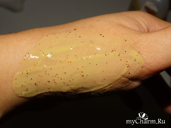 К сожалению, не могу сказать, что данный крем-гель очень легко пенится, поскольку это было бы неправдой. Но здесь всему виной его густота. Но я, тем не менее, не испытывала особых неудобств при его использовании, поскольку нахожу кремообразную текстуру приятной, и зернышки очень нежно скаблят кожу, буквально чуть-чуть, очень осторожно, что так же доставляет мне удовольствие.