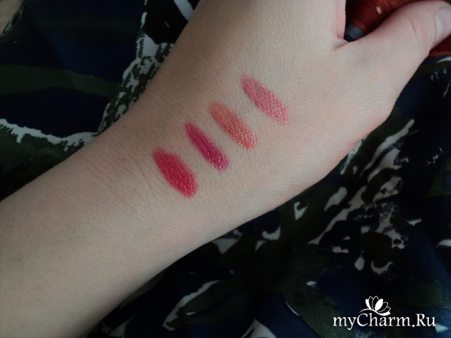 Конечно, все десять оттенков я оставлять не стала, раздарила подругам и сестрам, себе оставила лишь четыре. А привлекли мое внимание оттенки – «peach peck» (персиковый), «pink wink» (чарующий розовый), «fuchsia flirt» (фуксия), «lovey dovey pink» (кокетливый розовый - самый любимый оттенок, его практически не осталось, пора заказывать).