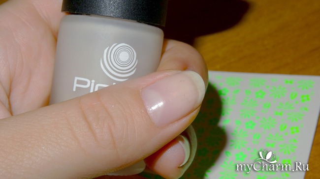 Так вот, когда мы определились с основой. В моем случае я взяла нейтральный базовый лак с легким оттенком натурэль.