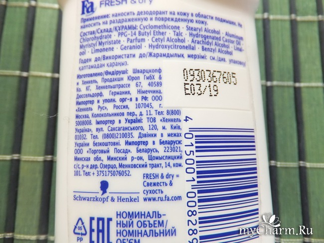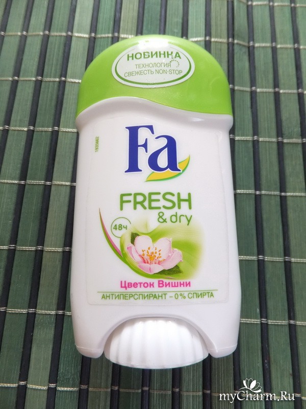 Самый обычный бюджетный дезик. Ничего сверхестественного и никаких особых бонусов: ни приятного тебе аромата, ни долгой защиты. Несколько часов свежести – вот всё, что может предоставить вам Fa Fresh & dry «Цветок вишни». Ставлю ему 3 балла, и скорее всего мы больше с ним не встретимся в одной ванной (по крайней мере не в моей))) – поищу что-то менее твердое и более стойкое.
