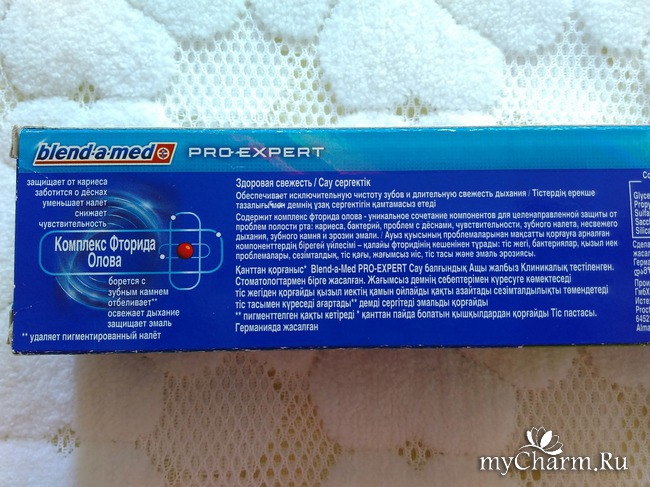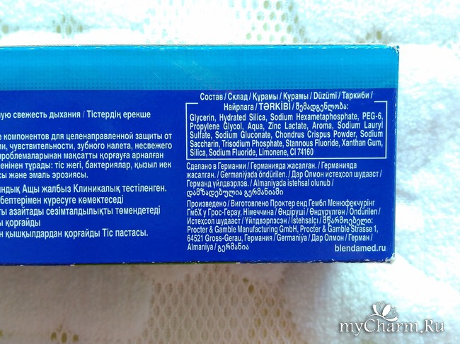 Что же в составе зубной пасты «Здоровая свежесть»? Во многом список составляющих схож с компонентами прочих средств Blend-a-med. Рассмотрим наиболее активные из них.