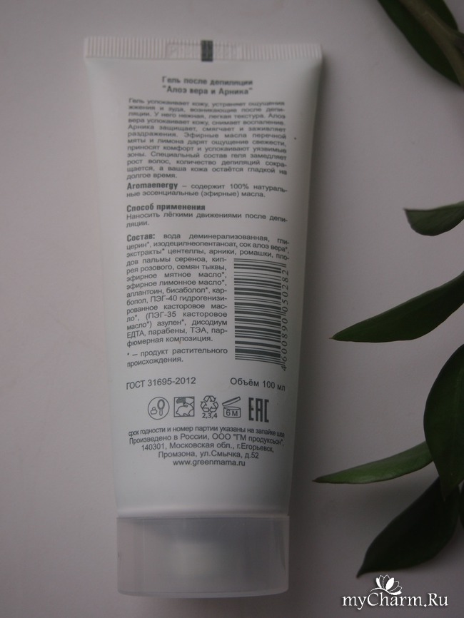 Познакомлю вас с одним из моих любимым средством — Гель после депиляции «Алое Вера и Арника» от Green Mama.