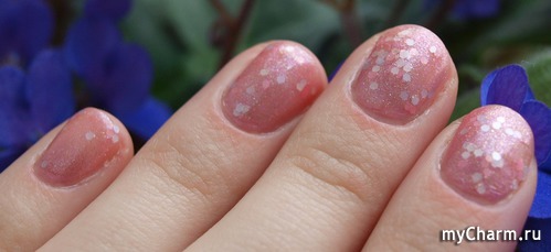 Еще пробовала на бежевом лаке, но эффект мне не понравился. Не так романтично) На розовом смотрится лучше. Думаю, еще красиво будет смотреться на голубом.