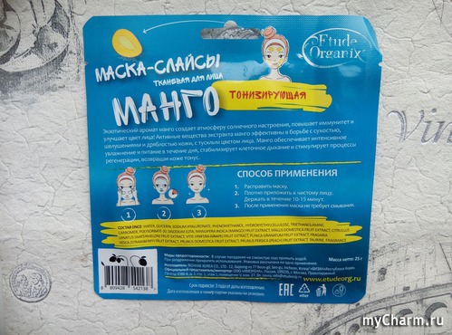 Для приятной заботы о коже лица советую попробовать маску-слайсы "Манго" от производителя "Etude Organix". Яркая упаковка привлекает внимание и вполне может быть взята даже в качестве подарка. Чудесный аромат и простой способ применения сделает ее использование легким и приятным. А кожа ответит Вам благодарностью и свежим внешним видом в ответ на заботу.