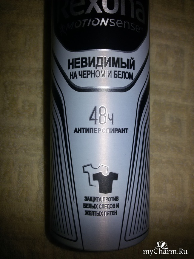 Мой благоверный довольно требователен к средствам косметики и парфюмерии: за малейшие изъяны он готов сразу же приговорить их к вечному изгнанию со своей полки. И я всегда внимательно присматриваюсь к его «фаворитам», чтобы не прогадать с подарками. На сей раз к нему попался один из спреев из известной серии Рексоны «Невидимый на черном и белом» с формулой «Motionsense».